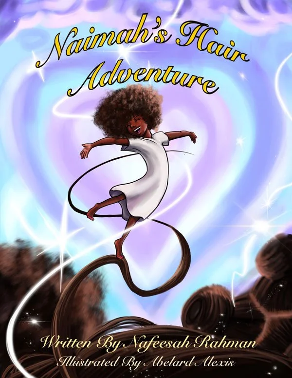 After yet another weekly, torturous hair session, where Naimah’s mother wrangles her unruly curls, Naimah decides to straighten her hair herself, which was a huge disaster! That night, Naimah cries herself to sleep, wishing for one thing, straight hair.When Naimah opens her eyes, she looks around and discovers that instead of her bed, she is lying on rows of thick, brown hair surrounded by huge towers of hair coiled up to the sky. This will be only her first of three hair adventures! Naimah will jump on afro puffs! Moonwalk on Bantu knots which causes them to unravel into waves of hair! Roller skate through corn braids, as they intertwine! We will follow Naimah on her hair journey as she learns about its uniqueness and versatility all the while celebrating the magic of a Black girl's hair!